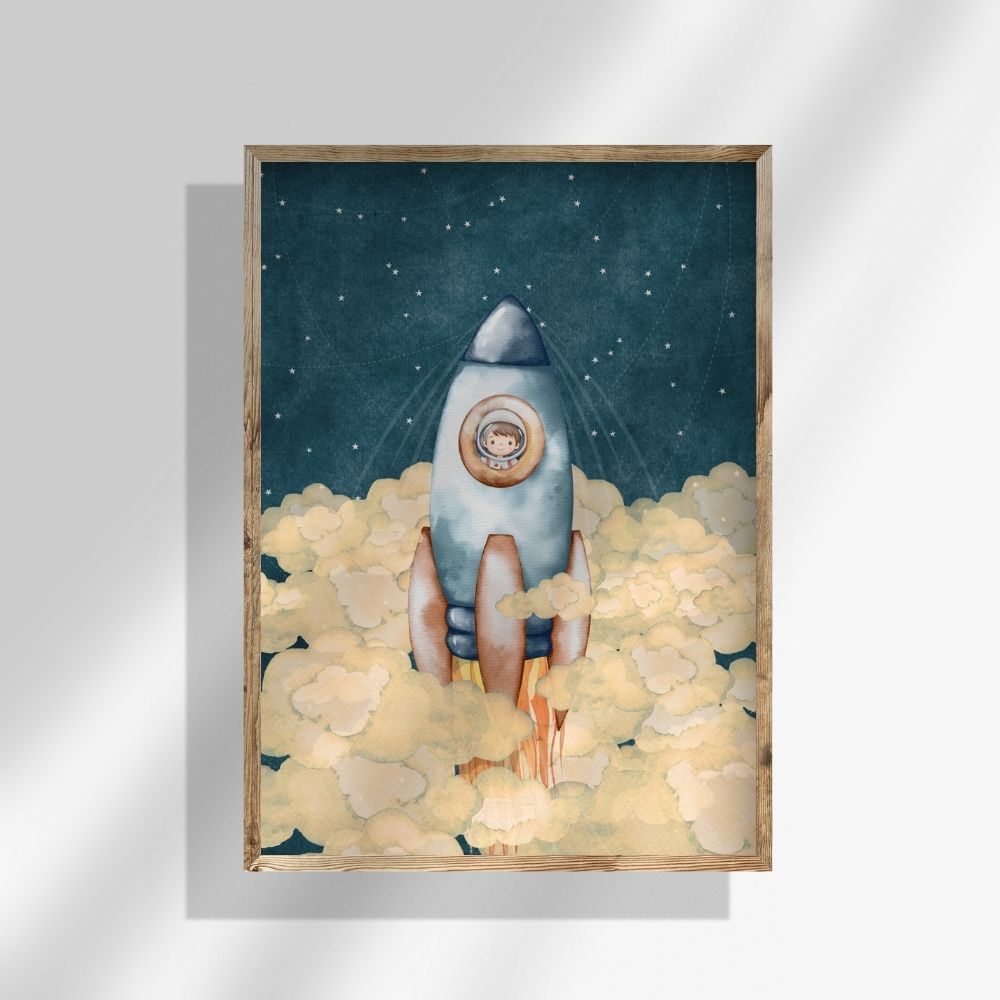 Barn älskar att drömma om rymden. Med sin lekfulla raket som färdas genom molnen blir den här postern en symbol för mod, nyfikenhet och äventyrslust. En barnposter som inte bara dekorerar, utan också inspirerar barnet att tro på sina egna drömmar – stora som små.